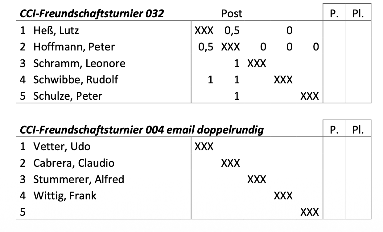 Bei Interesse bitte bei Frank Wittig melden! Weitere Turniere werden gestartet, sobald Anmeldungen bei Frank eingehen.